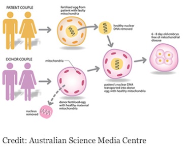 Both techniques create a human embryo with genetic material (DNA) from three parents: the infected mother, the woman who supplied the uninfected egg, and a male.
